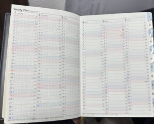 ちょうど手帳はこの様に半年分を見れるページがあるんです。